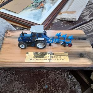 2. Tony Nicholson presented Martyn with an Eric Leslie painting. Another presentation was a model of a tractor and plough. (Keith Lamprey.)