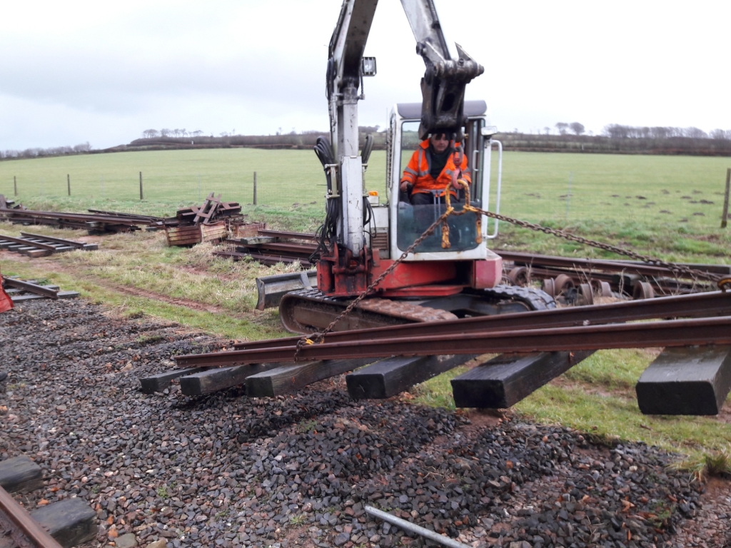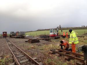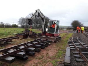 5. After lunch work began to dismantle the former transhipment/ballast loading siding. The first short panel was soon despiked and the sleepers stacked.