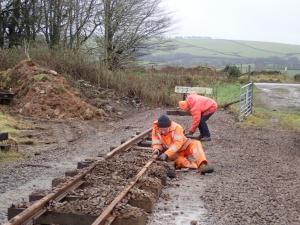 14. & 15. The newly laid track panels required levelling, gauging and aligning.