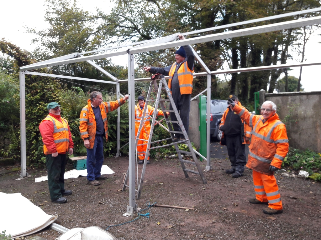 7. The main job for the rest of the Thursday gang was to erect this temporary marquee which becomes the Barbecue tent at the Gala. As ever many minds meant much discussion on the many ways to put up this now bi-annual tent here.