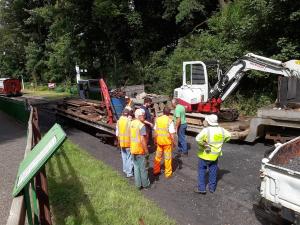 9. & 10. The main task for today's Thursday gang was to gather up and stack a pile of old rails and scrap from outside the shed. This was left over from last winter's rerailing of the pit road.