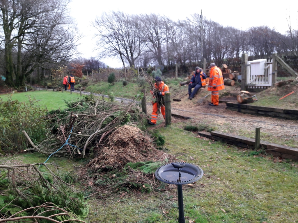 For everyone else on today's Thursday gang the task was the very unskilled job of moving all the cut down branches and logs from the two cut down fir trees by the small entrance gate by the A39