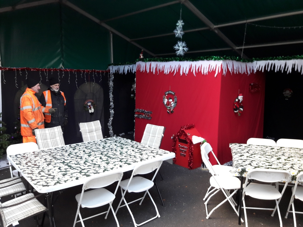16. & 17. During last weeks Working Weekend, the 'Grotettes' completed Santa's Grotto inside the marquee. It is now all ready to receive Father Christmas to meet the children and give them their presents.