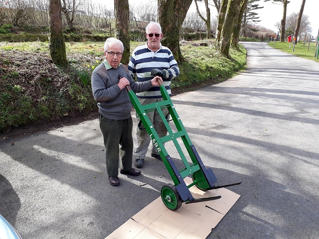 3. L&B Trust Member Ted Lawrence (left) delivered this sack barrow back to Woody Bay today. Restored at his home in Plymouth, Ted was able to graft in some new wood around the original sections. There remain several other projects such as various donated sack trucks which could be also be restored at home. Any willing volunteers out there?