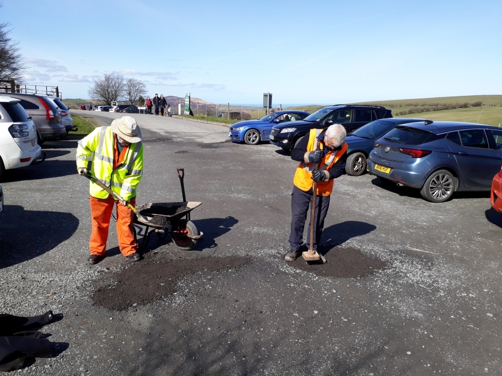 9. ..whilst other members of the Thursday gang filled some potholes in the car park...