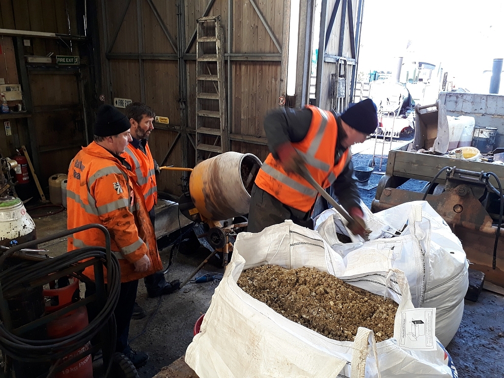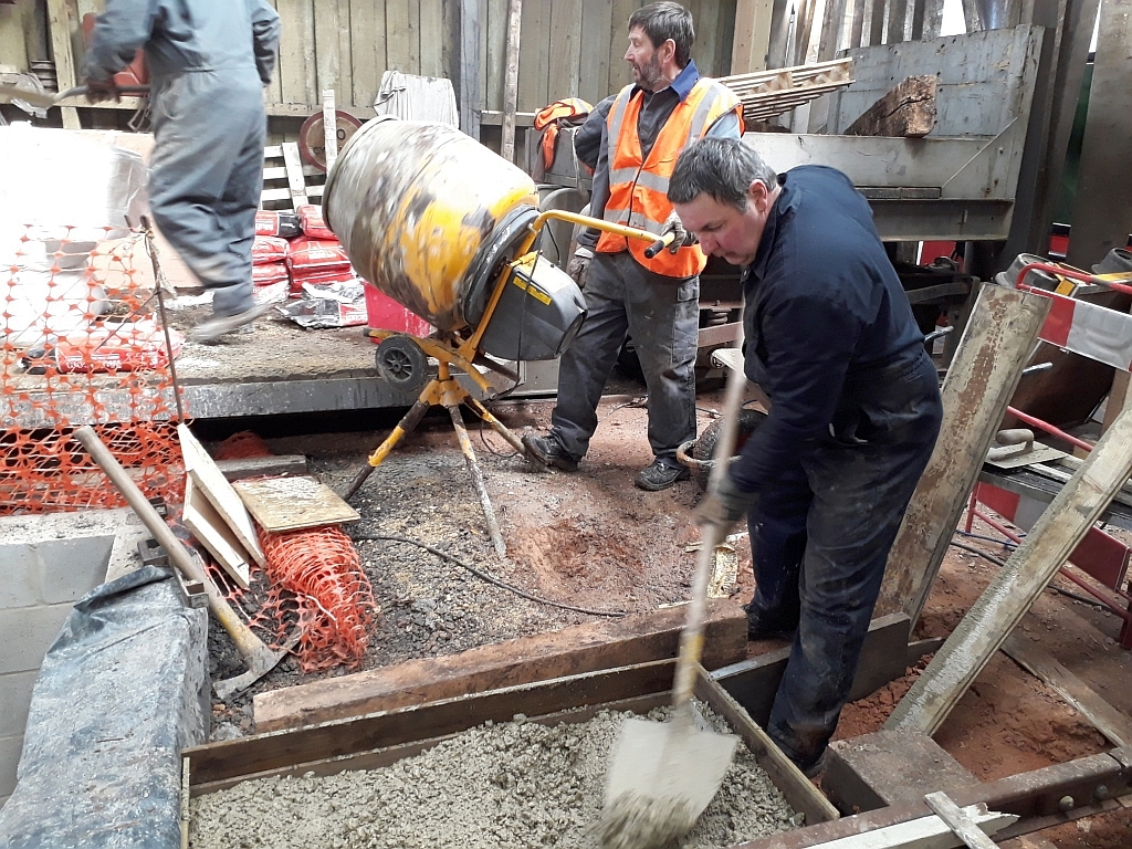 13. Nick Brown in charge of the mixer as Steve shovels the mix around the track...