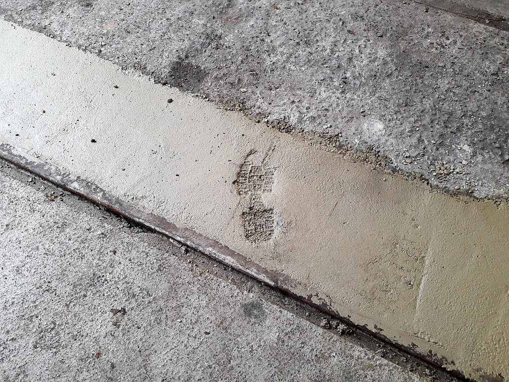 14. ..and then levels off the concrete flush with the rails.