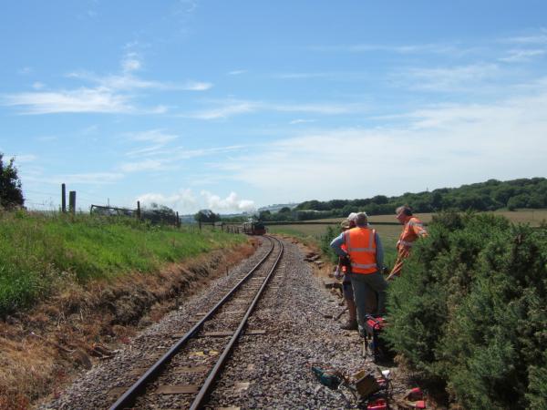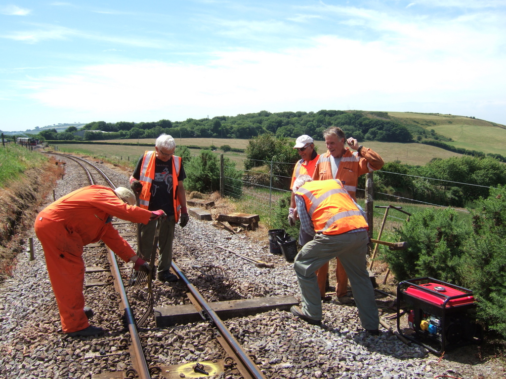 21. Out on the track, four Daves, assisted by Roger and Kevin for variety, continued the sleeper replacement programme. It was hot work today under the sunny blue skies but another six sleepers were replaced.
