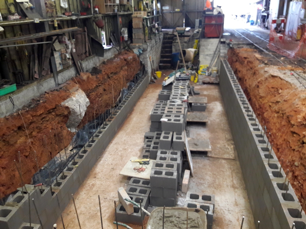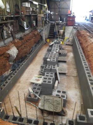 4. 5. 6. Our contractors were able to resume construction of the inspection pit. Block laying around the walls was well advanced this morning.