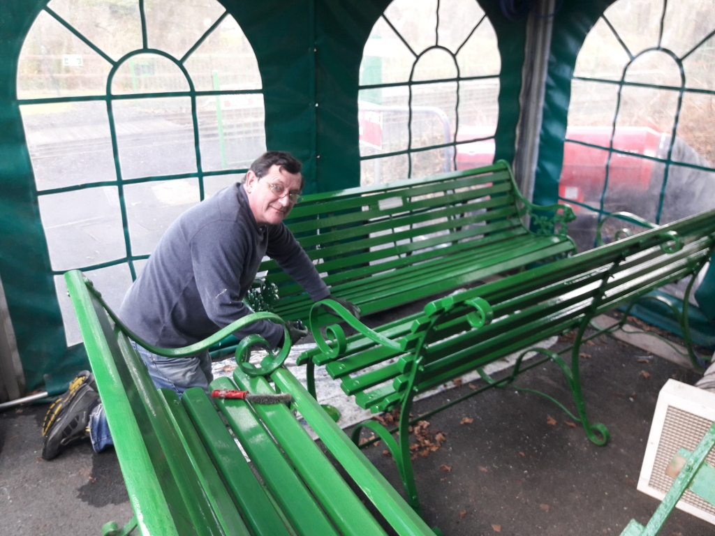 9. Also painting today was Terry Masterson in the marquee gradually completing the platform bench seat collection.
