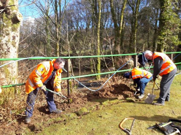 3. Hand digging the trench for a pipe to provide a water supply here for carriage cleaning etc.