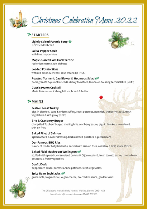 It was generally agreed that our previous social went well at The Cricketers and so we will be going there again this time. For a change though we have their Christmas menu available.