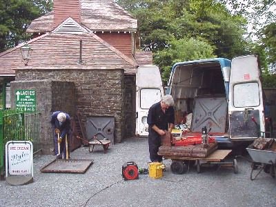 Surrey Area Group members at Woody Bay preparing the tank panels for galvanisation in July 2006