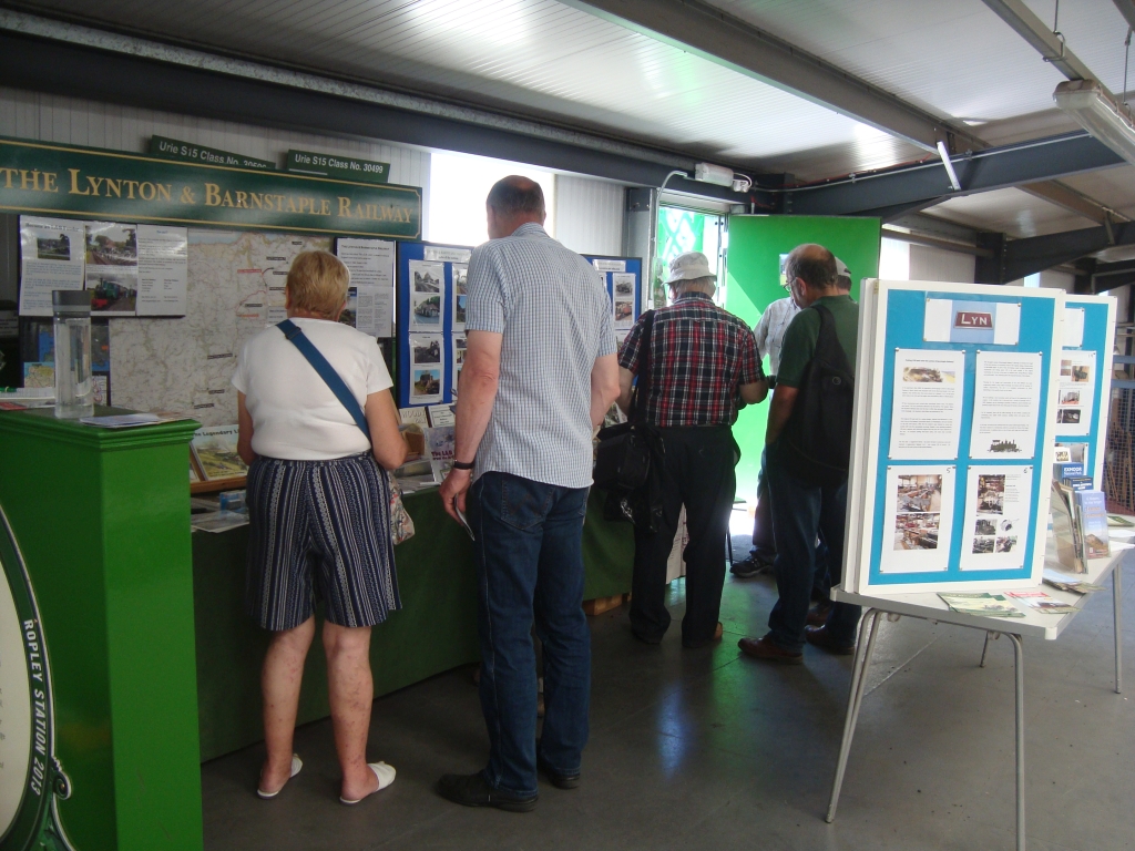 We were given full use of the viewing gallery in the carriage shed. This meant we had plenty of space to display many and various panels of information about the Lynton & Barnstaple Railway. During the five days we held hundreds of conversations with visitors and handed out countless leaflets.