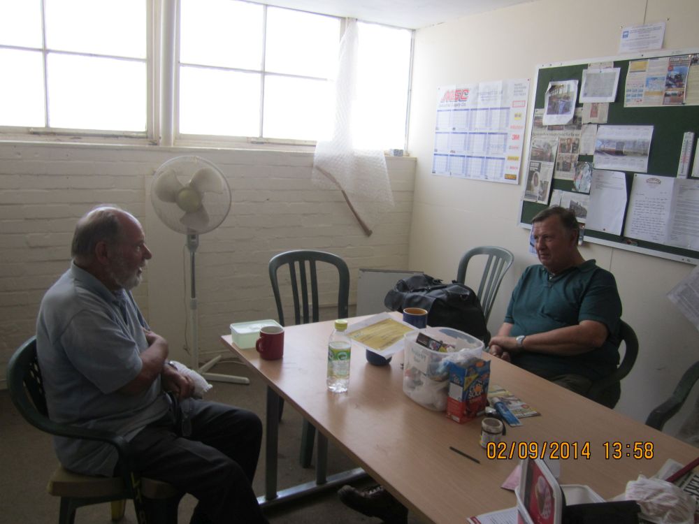 1. Chas Summers (right) welcomes (interviews?) new member/volunteer John Myhill (left) to E .A.S.T.