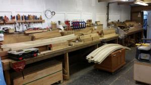 A workshop full of drying paint and varnish. With all these parts ready to assemble Coach 16 will start to take shape very soon.