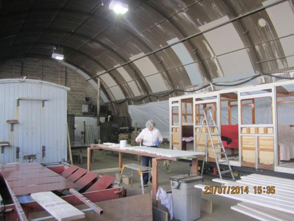 1. Boarding the roof - Anne Belsey and David Ely. Note carriage fully glazed.