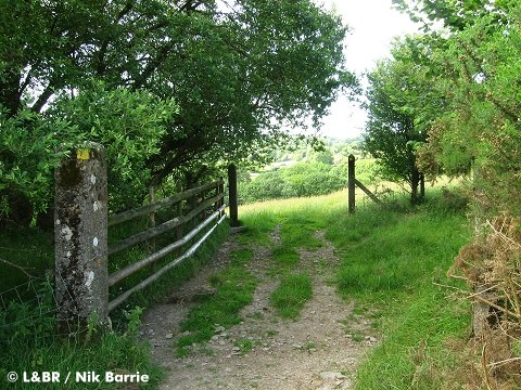 From Parracombe Halt, the railway traverses open fields before reaching Parracombe Bank. The centre of the embankment was washed away in 1952 during the Lynmouth Floods.