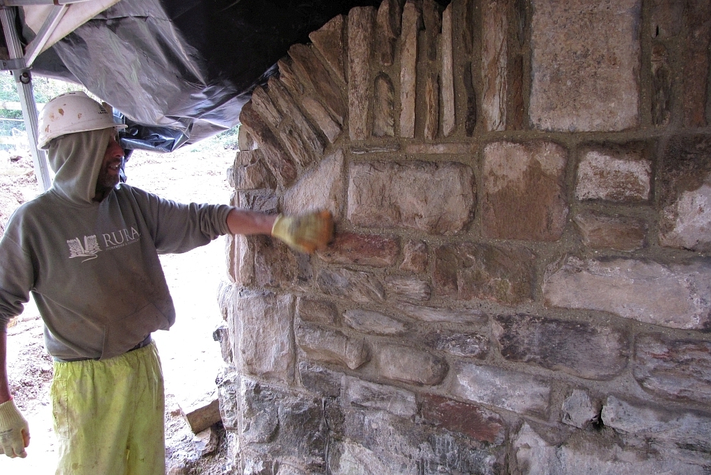 The main task outstanding is to complete the stone facing to the concrete. This has now commenced on Bridge 54, but it is a slow process because each stone is individually selected for size and fit. Care being taken to search for the original quoin stones which have a dressed edge detail that can be seen in the photo below.