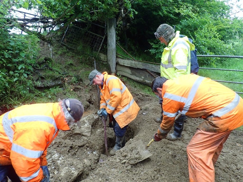 Devon County Council have an approval role at Bridge 54 because it crosses over a public bridleway. A joint inspection of the excavations was carried out on Monday 15th July by our bridge designer John Sreeves and Devon County Council’s inspector Steve Spicer. The excavation formations were approved and reconstruction can proceed.