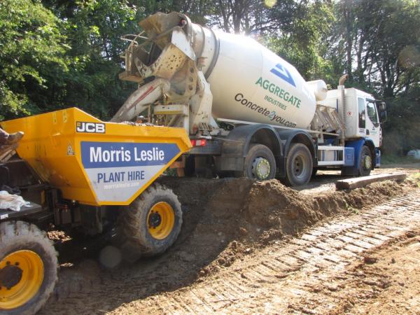 Concrete is delivered to site in 15 Tonne loads in ready-mix trucks from Barnstaple.