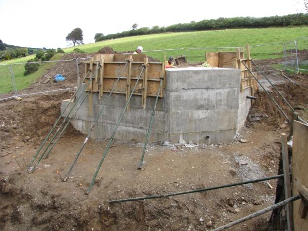 1. Behind the existing Barnstaple abutment, foundations have been dug and backfilled with concrete ready to receive strengthening concrete.