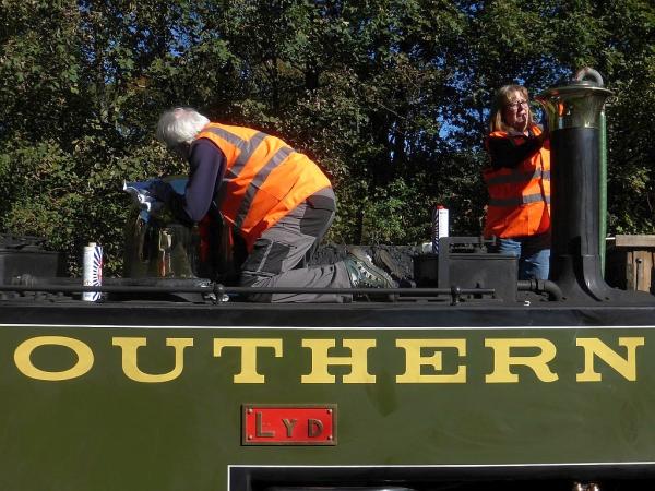 Graham Rust took these two photos of gala stalwarts Lindsay and Julian Palmer cleaning LYD in advance of the Gala.