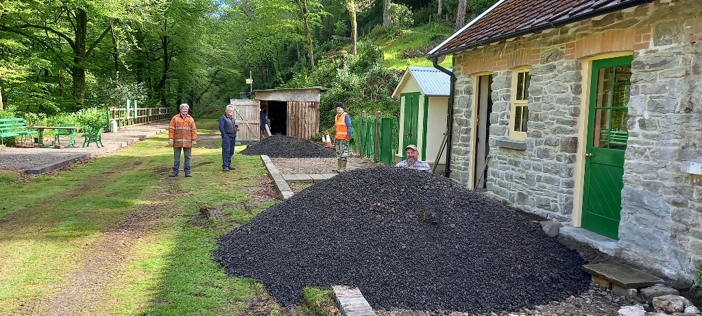 1 & 2. The day began with a delivery of road planings. The Nick Ager driver kindly tipped the piles onto the 'Up' platform.