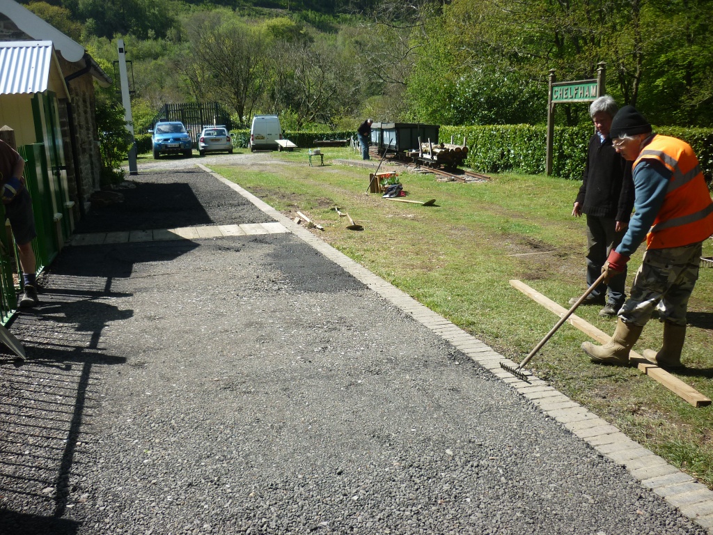 3. Then a morning of spreading and raking it out all along the restored platform.