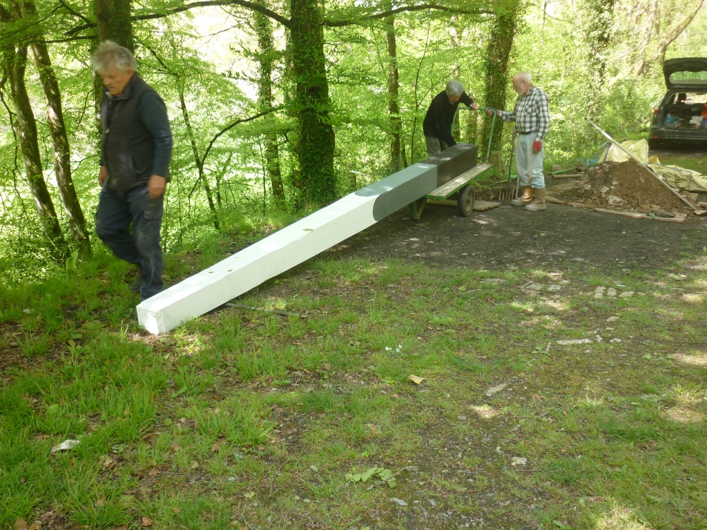 5. The new wooden post is positioned ready to slide into the hole.