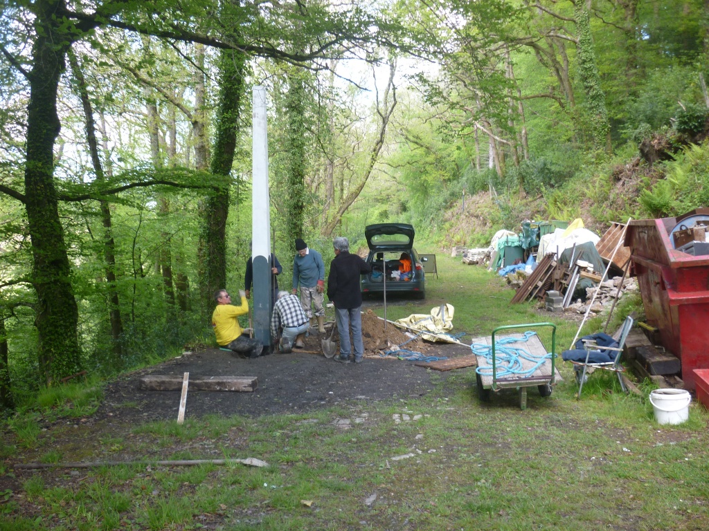 1. Chris Lane and Keith Lamprey discover the exact position of the down starter signal by carefully digging around the remains of the SR concrete post.