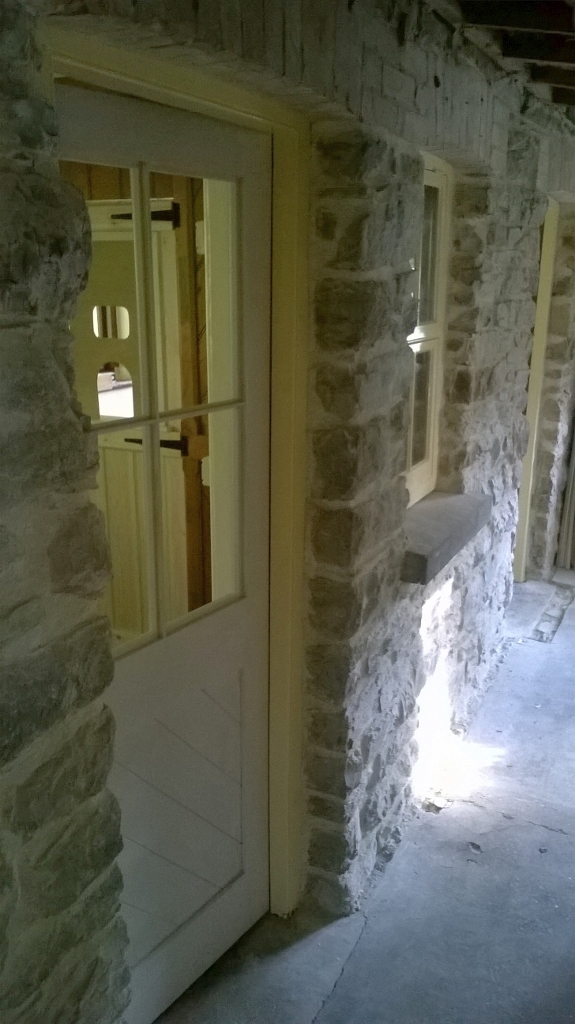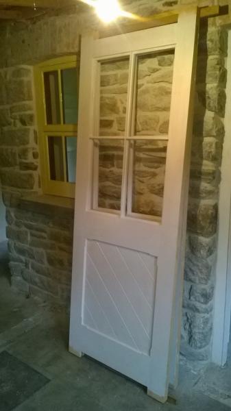 For those who are interested in the history of the building: it had been assumed that the door opening in the partition had been made after closure when the station was converted into a bungalow. However when the panel door and frame were removed it was found that 'Indian Red' paint had been applied to the cut edges. Indian Red had been applied all over the originally varnished partition at some stage, so the opening was there when the railway was operational.