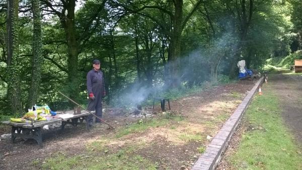 2. The down platform. Frank with another bonfire!