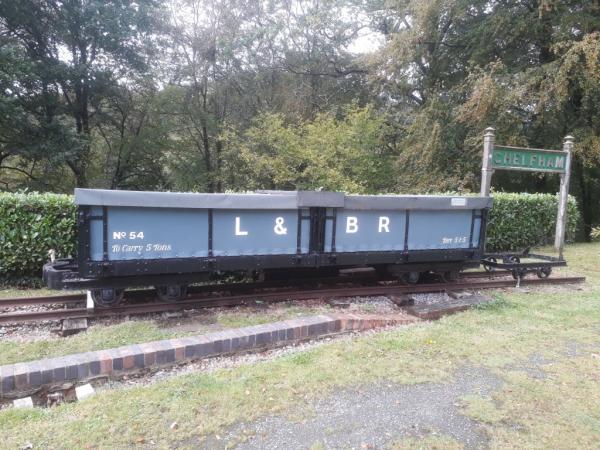 3. L&BR No. 54, the ex MOD bogie open wagon is stored on the down siding at Chelfham.