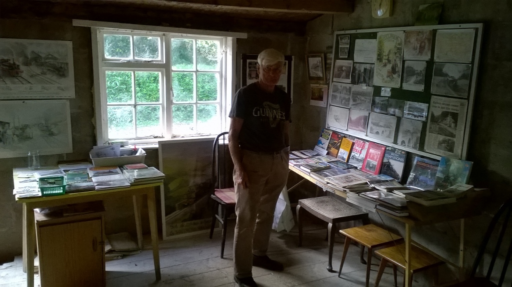 5. Almost everything has been taken out of the extension over the platform (added after closure) in preparation for its eventual removal. In the meantime, the space provides a useful sales area. Taking time off from his usual variety of jobs, Frank Daff checks out the second-hand books currently for sale. The donations and monies from sales received at Chelfham this year have all helped to fund the restoration progress, both outside and inside.
