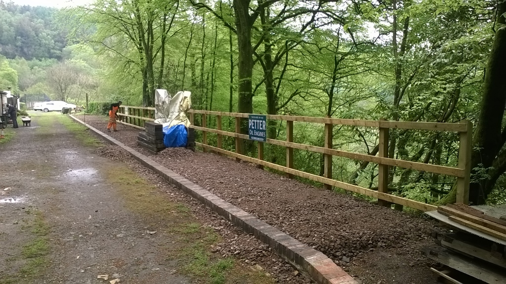 6. The most visible progress this year has been the re-creation of the down platform with its wooden fence. Dave Evans constructed and installed the fence last Spring. Heritage advertising signs for ‘Jennings’ complete the scene.