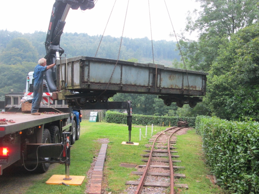 16. A HIAB lifts the wagon onto the down siding.