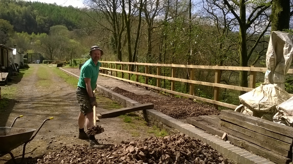 7. Nigel Thompson with the ‘Devon shovel’ spent all day shovelling this ballast across to build up the platform levels.