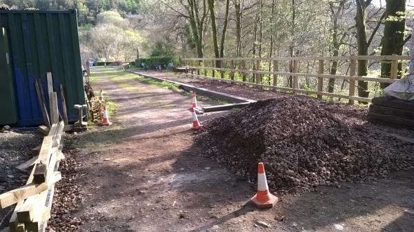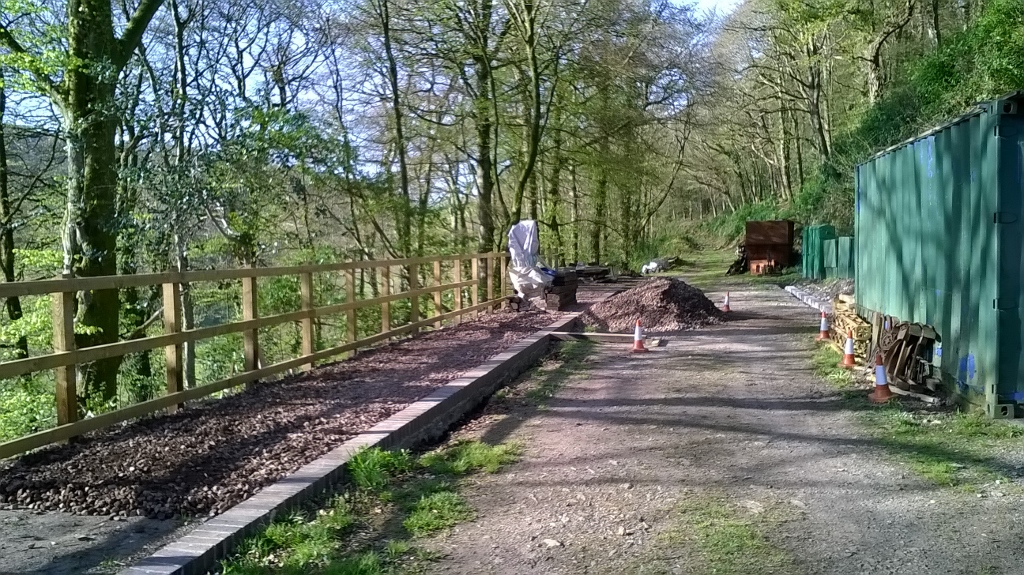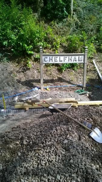Wednesday 4th May was a busy day in the restoration plans of the L&BR’s station at Chelfham as today a delivery of old ballast was used to back-fill the platform up to the level of the recently reinstated platform brick edging.