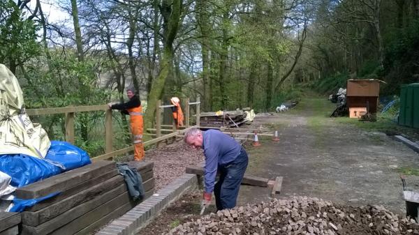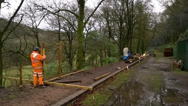 4. Outside, work has focused on the down platform with Dave Evans constructing the wooden post and rail fence as per the original. Dave began this work back in February.