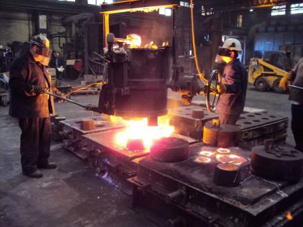 1. Molten steel is poured into the mould for Lyn's wheel at the Trefoil Steel Company's works in Tinsley, Sheffield - 14 April 2011.
