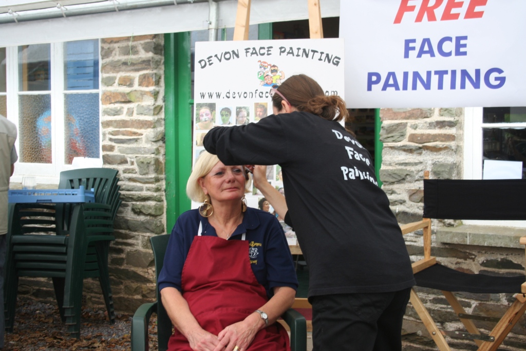 5. Tea Room volunteer Sandy Mannering enjoying having her face painted - or was it just a makeover?