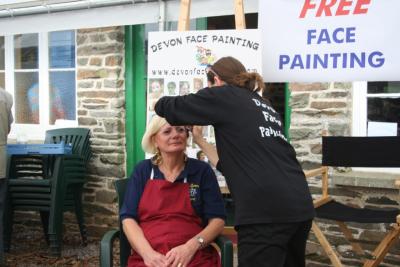 5. Tea Room volunteer Sandy Mannering enjoying having her face painted - or was it just a makeover?