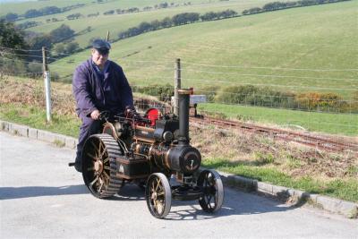 7. CME Stuart Wells with his model traction steam engine running in the car park.