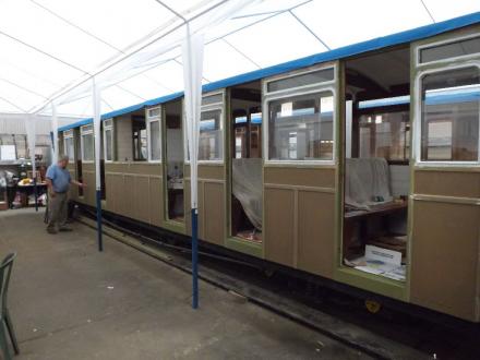 Meanwhile work on panelling, disabled access doors and paintwork continues.The completion of these coaches is now not very far off. However, glazing, upholstery, door transfers and even more paint is needed so this can happen. Understandably, further funds are still needed and about £8,000 will cover the cost of what is still left to do in order to reach our landmark goal of having two heritage carriages delivered to Woody Bay in the very near future. As always your assistance with funding will be greatly appreciated.