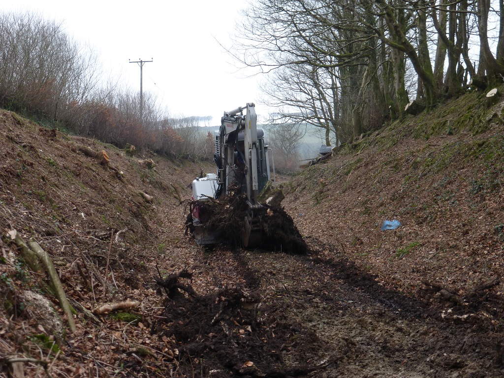 After completing the recent relaying of our two occupation crossings, the team returned to continue the clearance of the cutting between Bridge 54 and 53 at Wistlandpound. See map below.