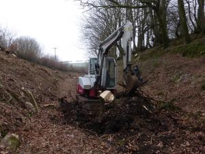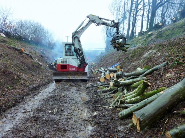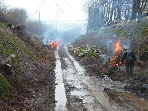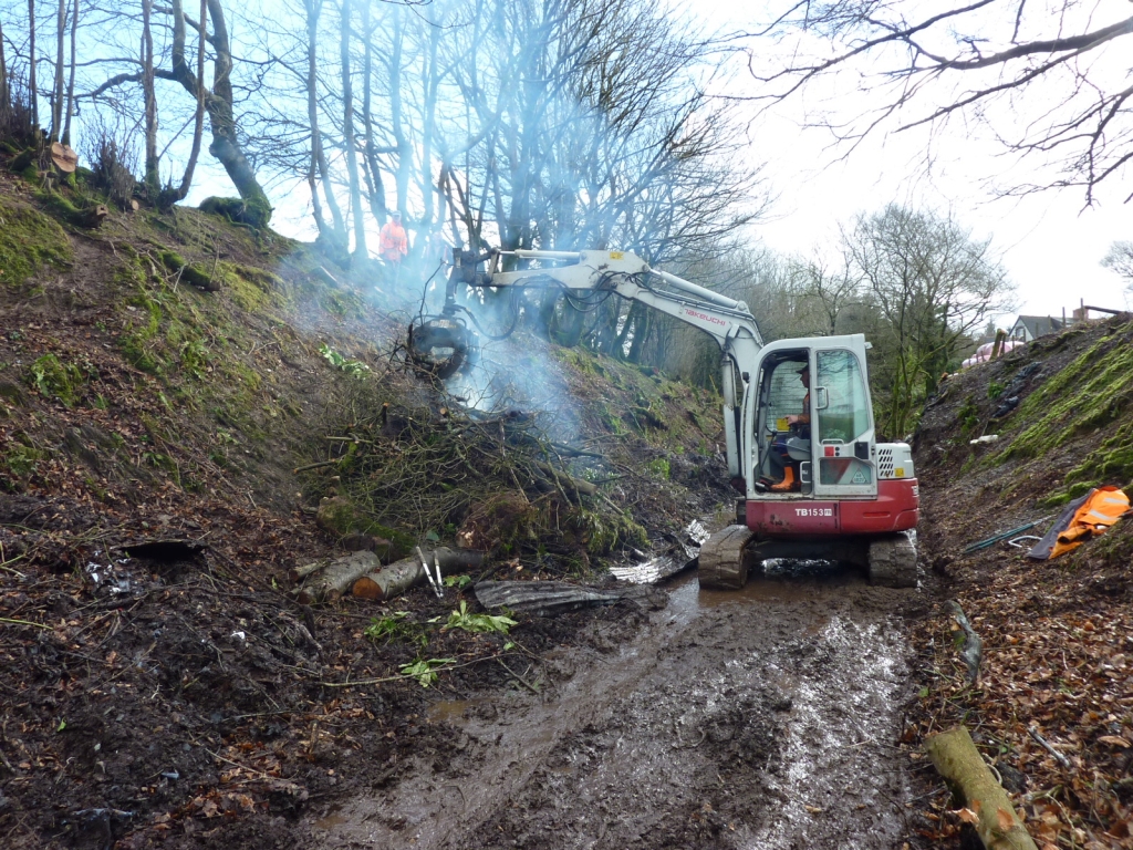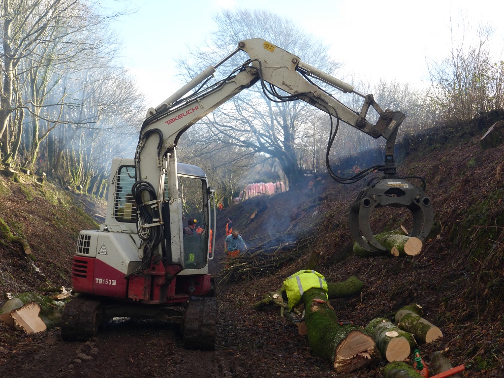 3. In the distance, General Manager, Martyn Budd, makes his way in the excavator to clear the wood previously cut during last November's working weekend.