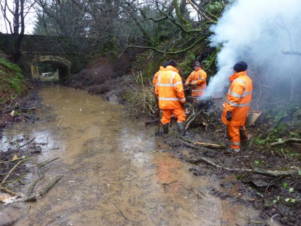 1. Keith Lamprey tries to keep the water flowing away Bridge 53, however, this will remain a problem until we access the trackbed the other side of the bridge.