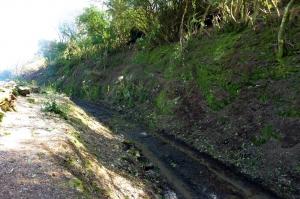 8. The northern boundary of the railway is formed by this dry stone wall, still in good condition despite the incursion of invasive laurel trees.