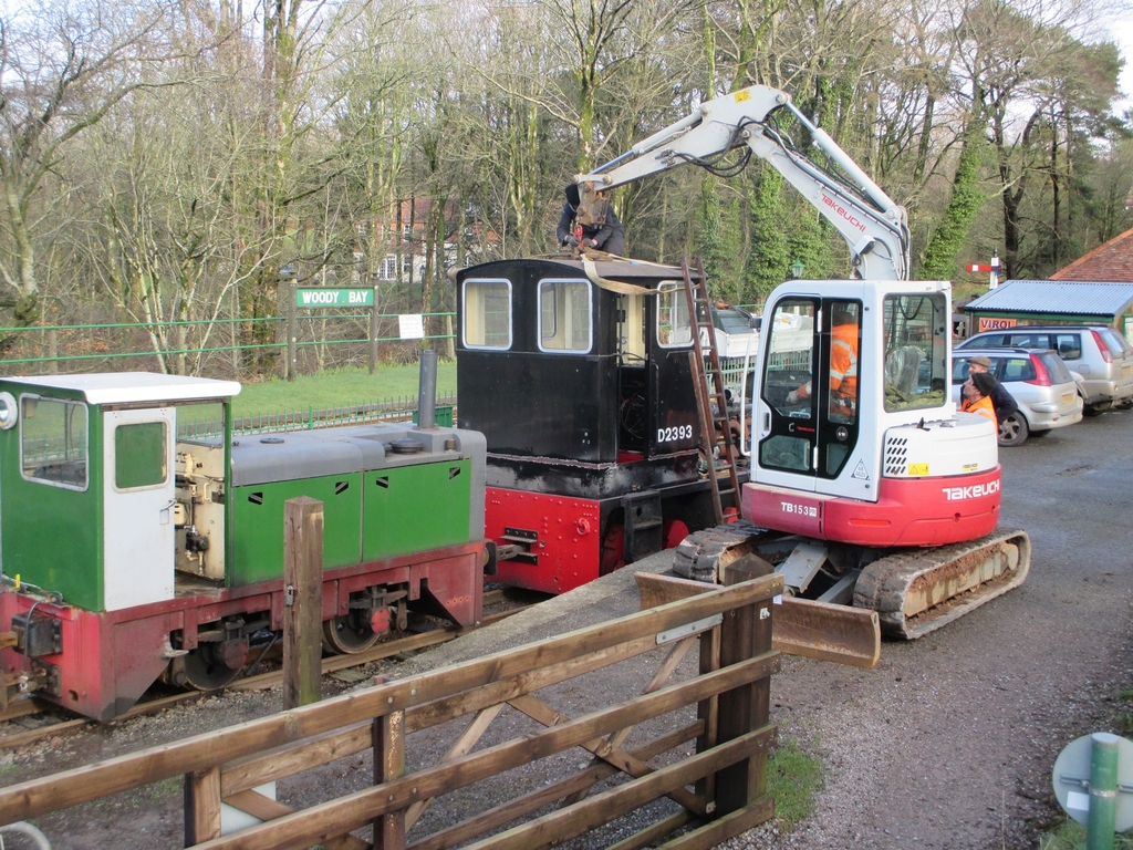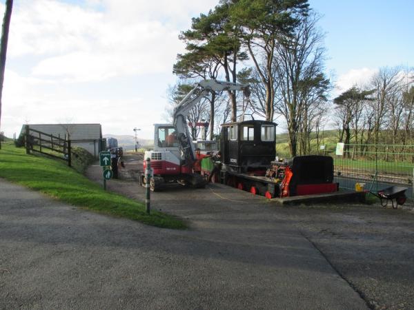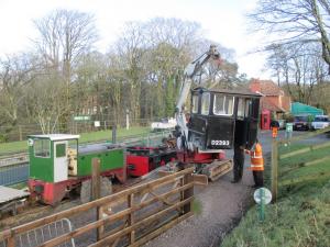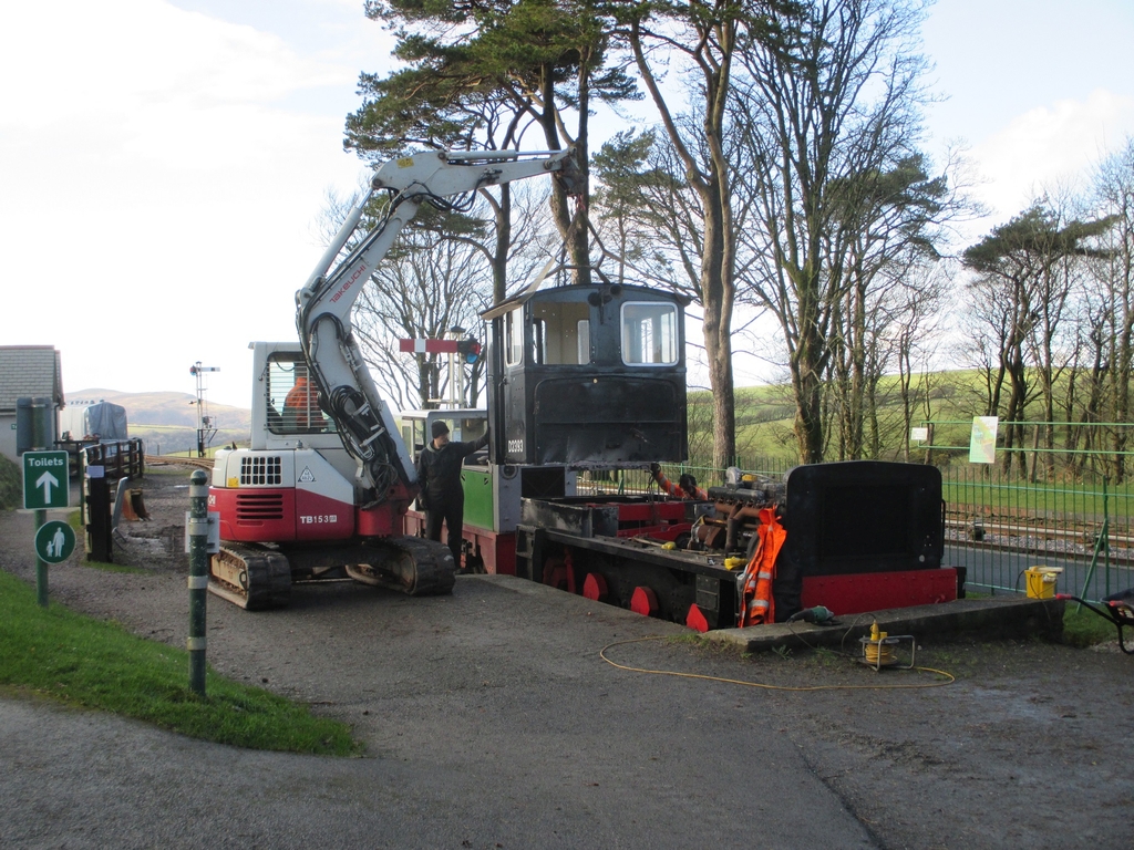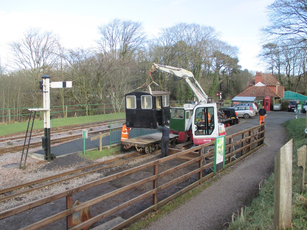 7.& 8. The excavator once swung-around, placed the cab on to the flat wagon, to be returned to the engine shed for further conversion work.